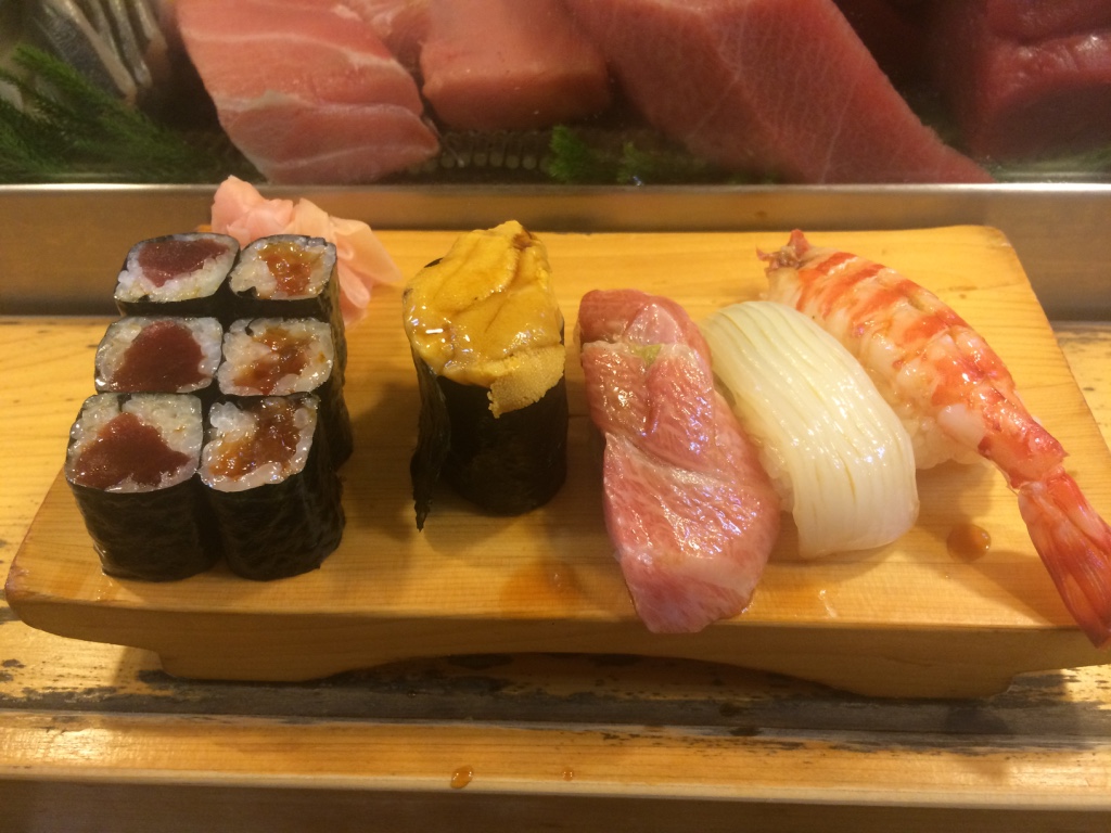 | My omakase sushi tasting at the Tsukiji Fish Market - sushi at its simplest, and most delicious |